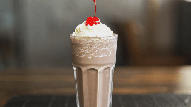 Chocolate milkshake with whipped cream and cherry