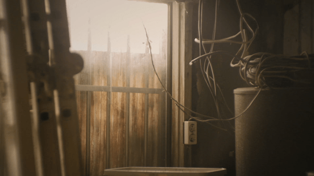 Man doing push-ups in a dimly lit room with sunlight streaming through the window