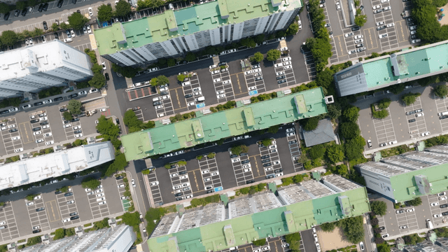 Aerial View of Parking Lots and Apartment Complexes