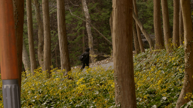 Person Walking Through a Sunlit Mountain