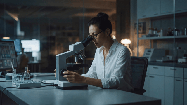 Scientists who conduct research with pipettes and microscopes in laboratory