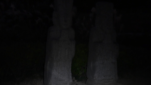 Traditional stone statues at night