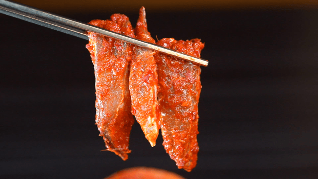 Spicy marinated dried fish with red sauce