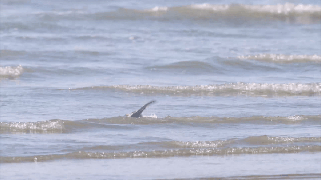 Bird flying while swimming in the sea