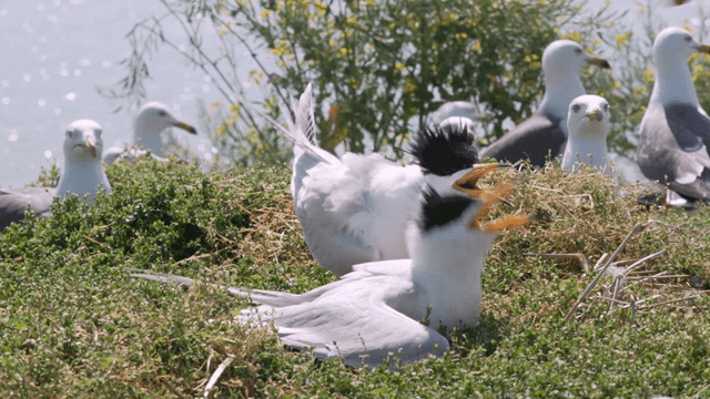 Terns protecting their young offspring in their natural habitat