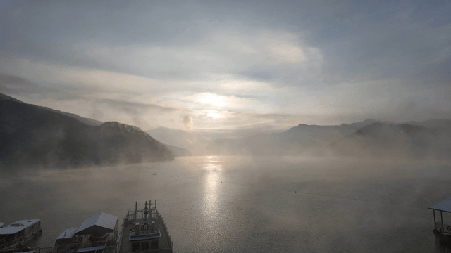 Sunrise over a misty river