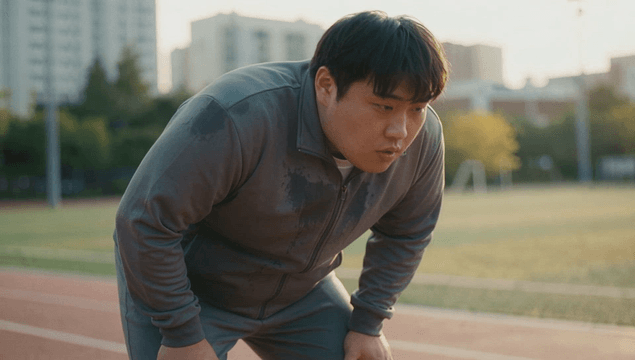 Fat man resting after intense exercise