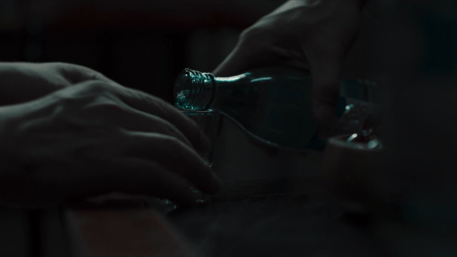 Green water bottle in dim light