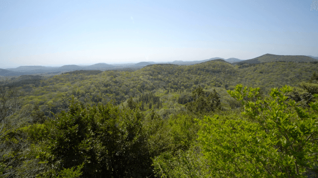 Expansive green landscape with forests