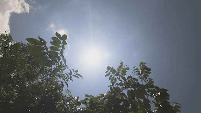 Sunlight streaming through tree leaves on a bright day