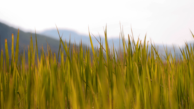 Fresh green rice growing in the field on a sunny day, nonglutinous rice