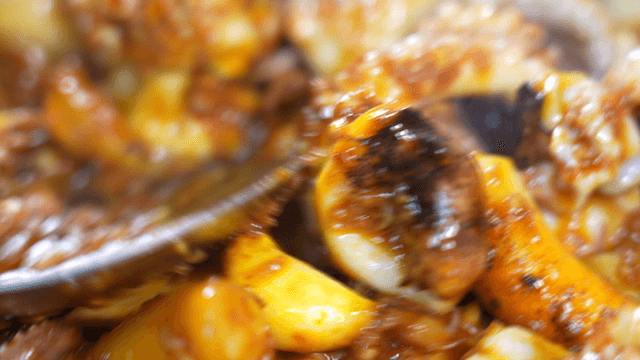 Spicy stir-fried octopus being cooked