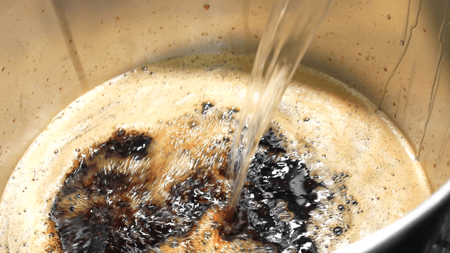 Pouring liquid into a large metal pot