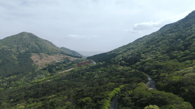 Lush green mountains and a winding river