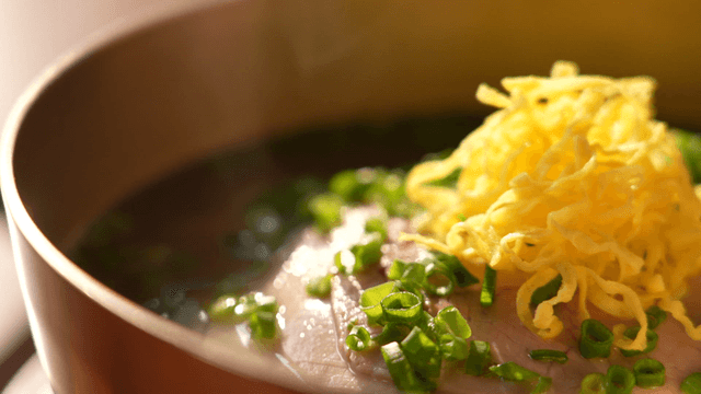 Appetizing Pyeongyang cold buckwheat noodles topped with egg custard and meat