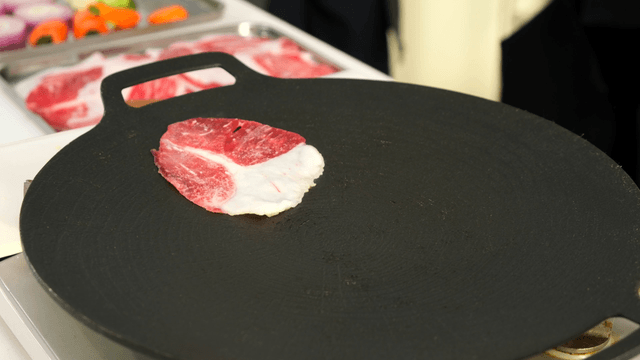 Grilling beef on a hot pan