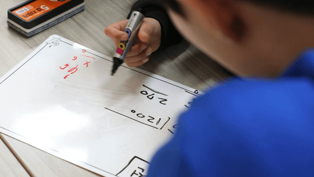 Student writing in a workbook
