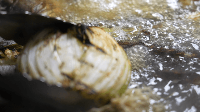 Adding Kimchi to the bubbling Bulgogi Hot Pot
