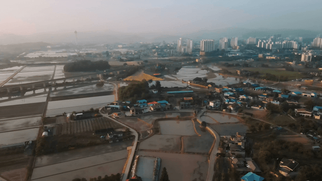 Expansive rural farmland and village