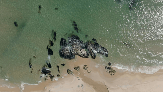 Aerial view of a serene beach with gentle waves