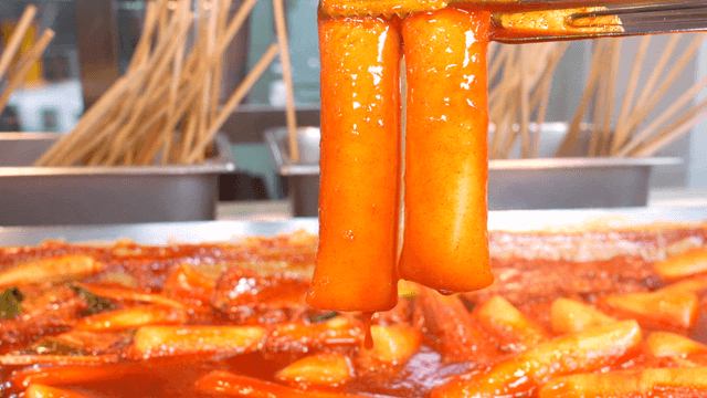 Spicy tteokbokki in a rich red sauce