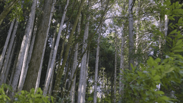 A serene forest with tall trees