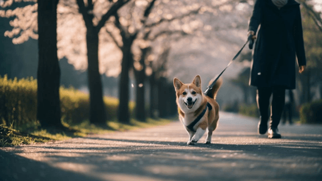 Small curly-haired poodle dog standing on an outdoor concrete floor