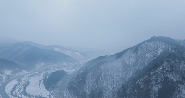 Snow-covered mountains and winding roads