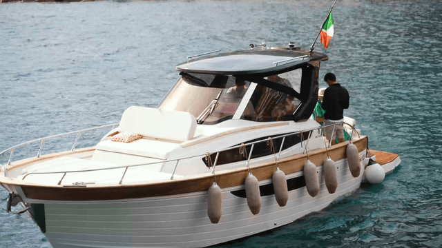 Speedboat cruising in the open blue sea