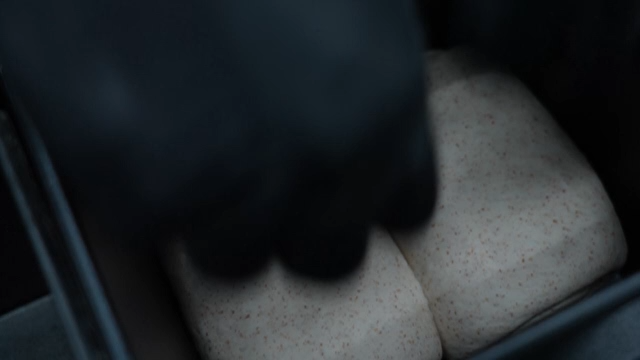 Freshly baked bread being handled