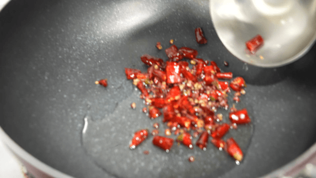 Adding spicy flavor to pan-fried dishes by adding red pepper powder
