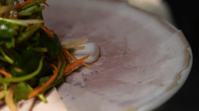 Dining scene of enjoying a delicious meat and vegetable stir-fry on a plate