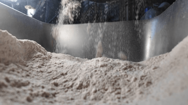 Flour being added to a large mixer