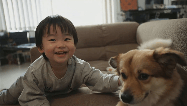 Small curly-haired poodle dog standing on an outdoor concrete floor