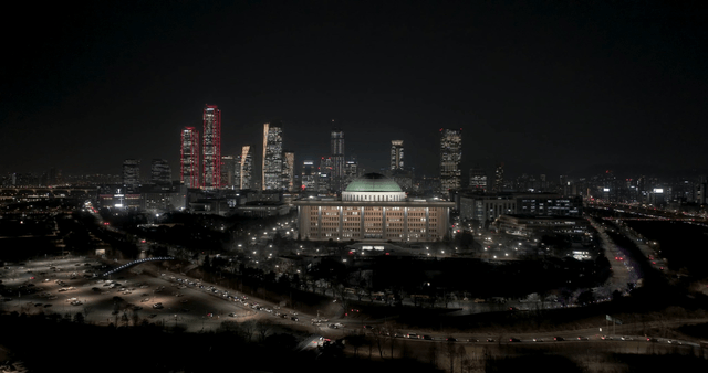 Aerial Shot of the Night View Around Yeouido