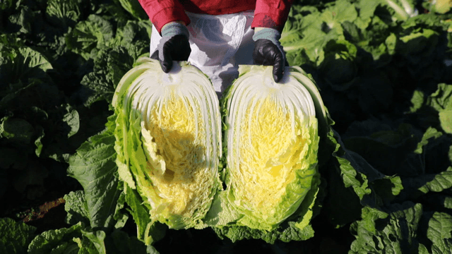 Fresh napa cabbage growing in a field