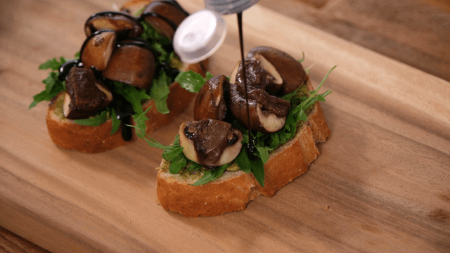 Deliciously braised mushroom in soy sauce garnished with sesame seeds