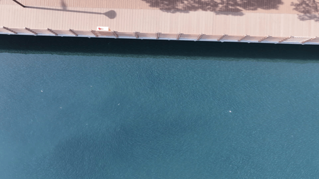 Fish fill river next to walking path