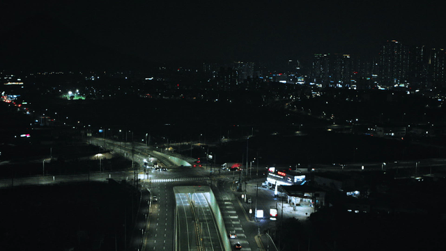 Night View Illuminated by the Lights of a Bustling City and Traffic