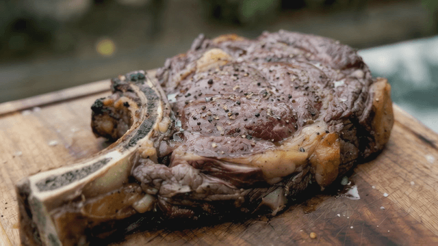 Seasoned steak grilled on the grill