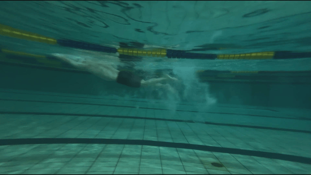 Person practicing free diving in a swimming pool