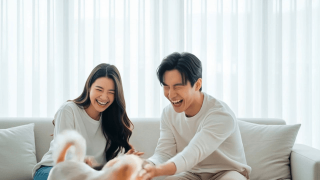 Small curly-haired poodle dog standing on an outdoor concrete floor