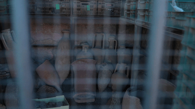 Ancient clay pots stored in a warehouse