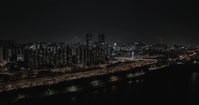 Aerial Shot of the Night View Around Yeouido