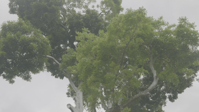 Lush green leaves on tall trees