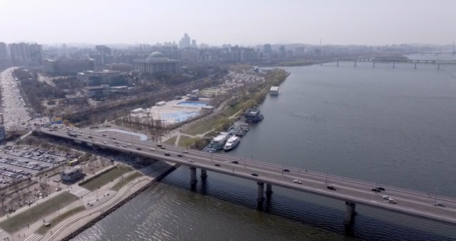 Aerial View of the Han River in Seoul on a Clear Day