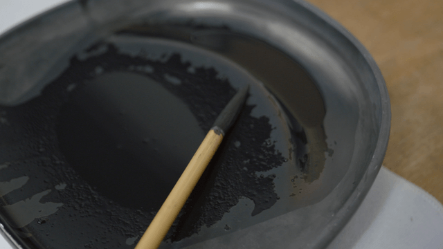 Calligraphy brush stained with ink