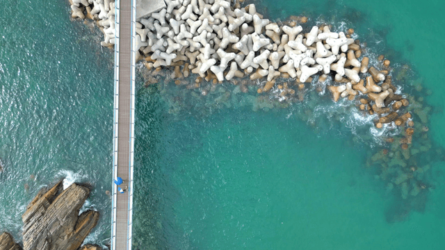 Coastal road winding along the green sea