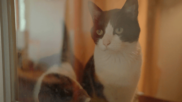 Curious cat looking through a window