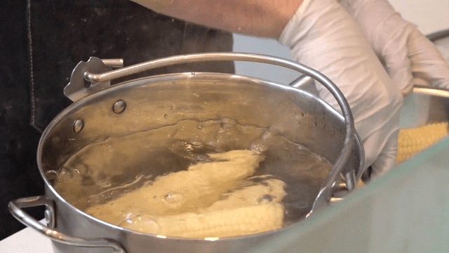 Corn boiling in a pot of water